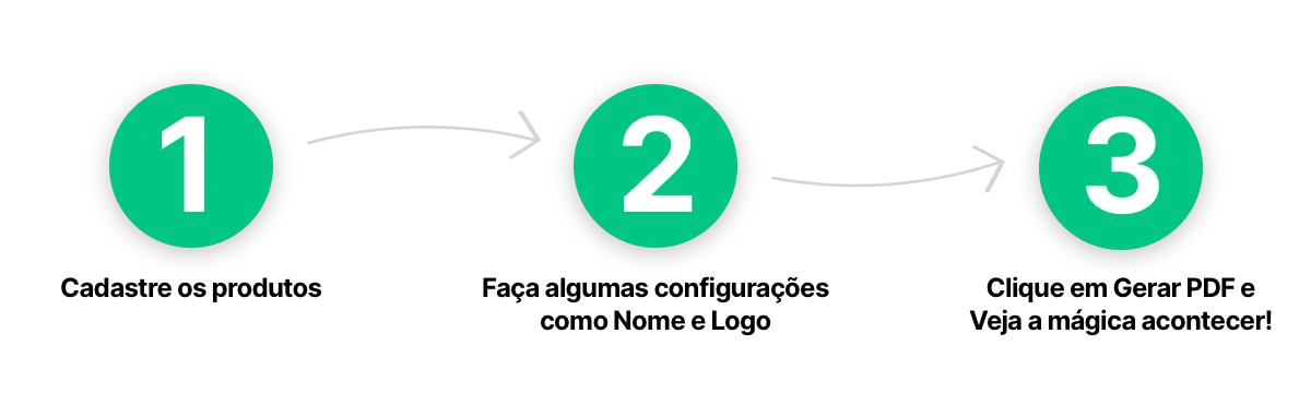 Você apenas irá cadastrar as informações dos seus produtos, fazer pequenas configurações, como o nome do seu catálogo, logo da sua empresa, e gerar seu catálogo PDF.
